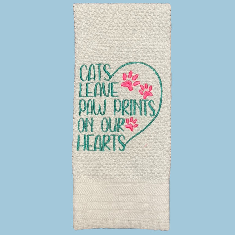 Embroidered Kitchen Towel- Cats Leave Paw Prints